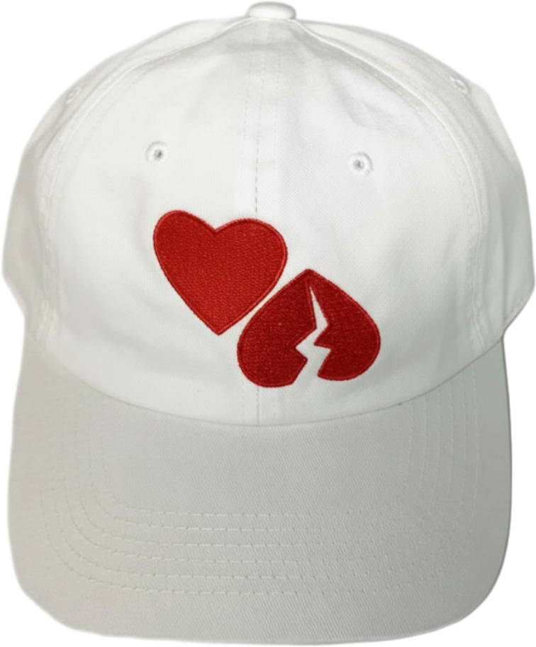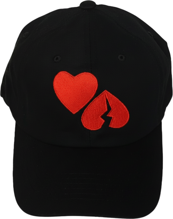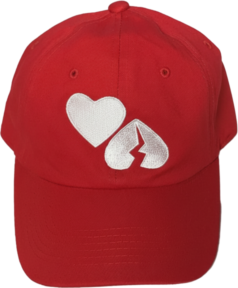 These "Heart Flip" dad hats are embroidered with a solid color design, adjustable strap with metal clasp, and durable canvas material.